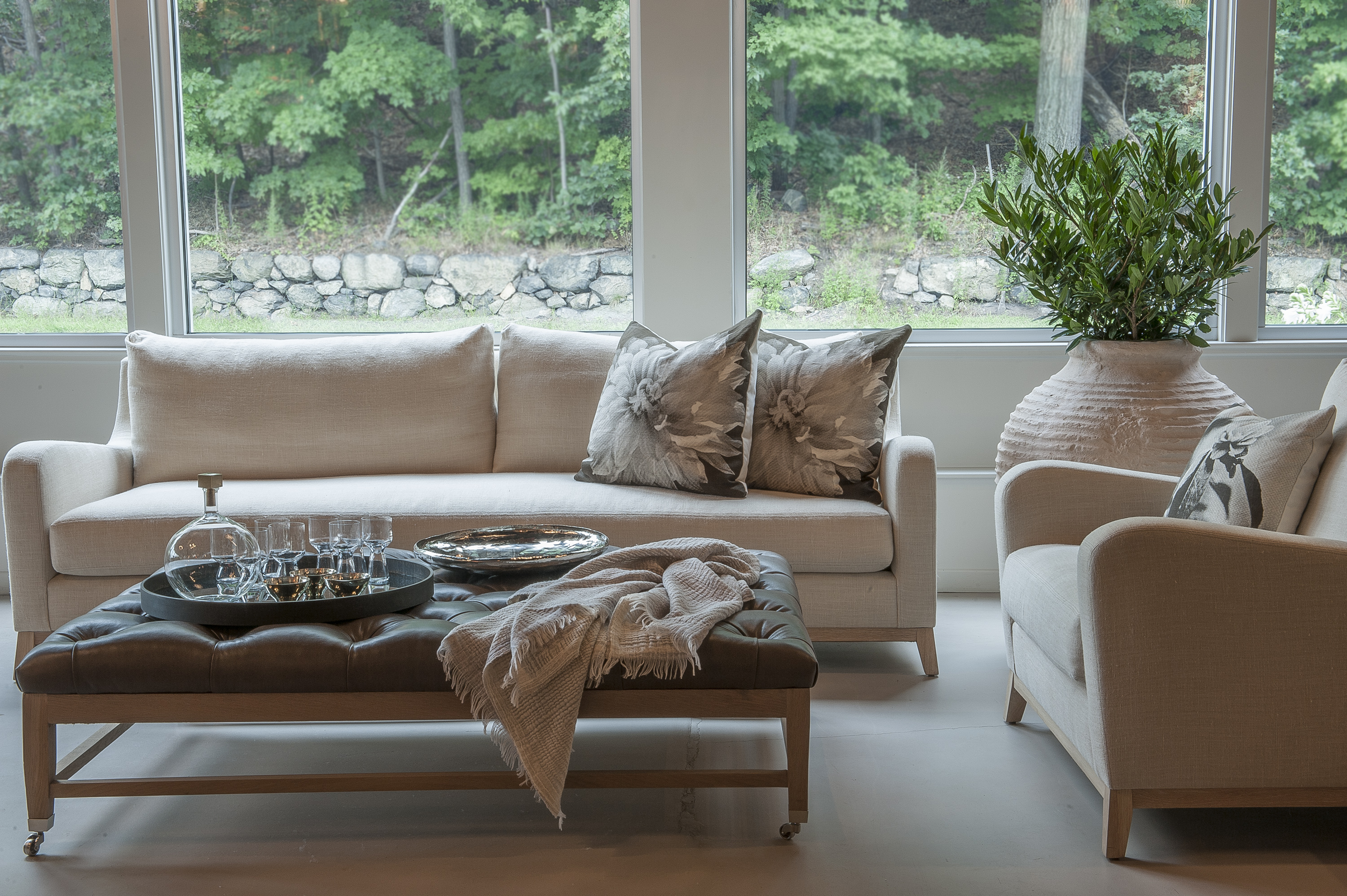 custom duke sofas in perennials, custom verellen table/ottomans…lola poufs to ‘move where needed’. photography by jessica delaney.